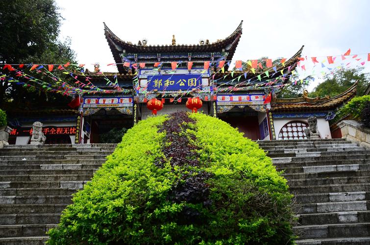 鄭和公園座落在滇池風(fēng)景區(qū)南岸,晉寧區(qū)城的月山上,始建于1978年,原名為月山公園,1980年為了紀(jì)念鄭和,將月山公園更名為“鄭和公園”,占地面積16.67公頃(250畝)。公園以鄭和文化為主題,被列為昆明新十六景之一,名為“月山帆影”,1988年命名為滇池國(guó)家重點(diǎn)風(fēng)景名勝區(qū),園內(nèi)主要有鄭和雕像、三寶樓、鄭和碑林、馬哈只墓、鄭和紀(jì)念館、鄭和故居等景點(diǎn)。其中,“馬哈只墓碑”為國(guó)家級(jí)重點(diǎn)文物保護(hù)單位,“鄭和紀(jì)念館”為云南省首批愛國(guó)主義教育基地。