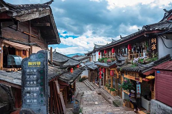 具有800多年歷史的麗江古城,坐落在麗江壩子中部,面積約3.8平方千米,始建于南宋末年,是中國(guó)歷史文化名城中唯一沒有城墻的古城。發(fā)源于城北象山腳下的玉泉水分三股入城后,又分成無數(shù)支流,穿街繞巷,流布全城。古城心臟四方街明清時(shí)已是滇西北商貿(mào)樞紐,是茶馬古道上的集散中心。其四周6條五彩花石街道依山隨勢(shì),輻射開去,街巷相連。1986年被國(guó)務(wù)院確定為中國(guó)歷史文化名城;1997年12月4日,被聯(lián)合國(guó)教科文組織正式批準(zhǔn)列入《世界遺產(chǎn)名錄》清單,成為全國(guó)首批受人類共同承擔(dān)保護(hù)責(zé)任的世界文化遺產(chǎn)城市。
