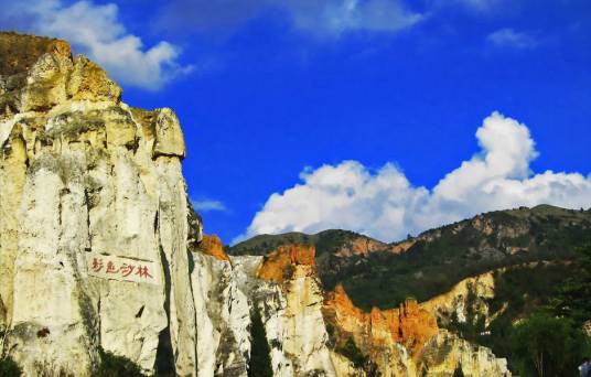 國家AAAA級旅游區(qū)——彩色沙林云南省曲靖市南部陸良縣的馬街鎮(zhèn)境內(nèi),占地25平方公里,保護(hù)區(qū)面積52.8平方公里,是云南旅游精品線路上的重要景區(qū),距陸良縣城以南18公里,距石林40公里、昆明130公里、瀘西50公里、羅平96公里,具有優(yōu)越的區(qū)位優(yōu)勢和便捷的通達(dá)條件。(除此之外,沙林還有很多集科學(xué)和歷史為一體的人文景觀;主要有34個洞穴構(gòu)成的“洞穴度假村”、“三十六計洞穴浮雕”、“洞穴舞廳”、“沙地跑馬場”、“古棧道”、“峰火臺”、“古城堡”、“《爨史》浮雕”、“爨府玄 門”、“文房四寶(石筆、石墨、石硯、石紙)”、“碑林”、“化石門”、“南蠻乾門”、“彝家寨門”、“孟獲寨門”、“孟獲王府”、“沙雕賽區(qū)”、“戰(zhàn)馬坡”、“盤蛇谷”、“蠻王古墓”、“竹園”“千年古藤”、“黑泉”、“挑斷口子”等。)