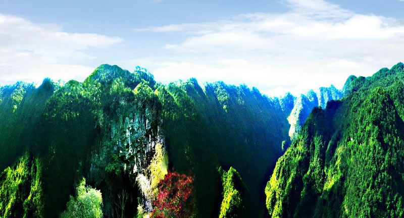 地形地貌 富源縣地貌為中山山地,突出的峽谷地貌,其特征為河流縱向切割、山川南北展布、地形破碎、山高谷深、坡陡流急、巖溶發(fā)達、河谷階地狹窄,耕地零星分散。烏蒙山支脈自北向南縱貫全境,南北長約103千米,東西寬約54千米,兩頭寬、中間窄,呈薯形相銜狹長地形。全境地勢北高南低,由西北向東南略有傾斜。境內最高海拔為西北部的營盤山,海拔2748.9米,最低海拔為東南部的特土峽谷,海拔1110米。