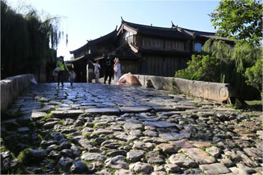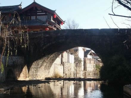 長25米、寬4.5米、高4米,全部由石塊壘砌,列為麗江古石橋之最,可見束河在麗江歷史上的經(jīng)濟文化格局中所占的重要地位。青龍橋的橋面經(jīng)過數(shù)百年風(fēng)雨的洗刷使它變得斑駁蒼老,卻不失它的英雄氣勢和莊嚴(yán)厚重感,站在這里,你也許會聽見馬蹄的聲音在回響。