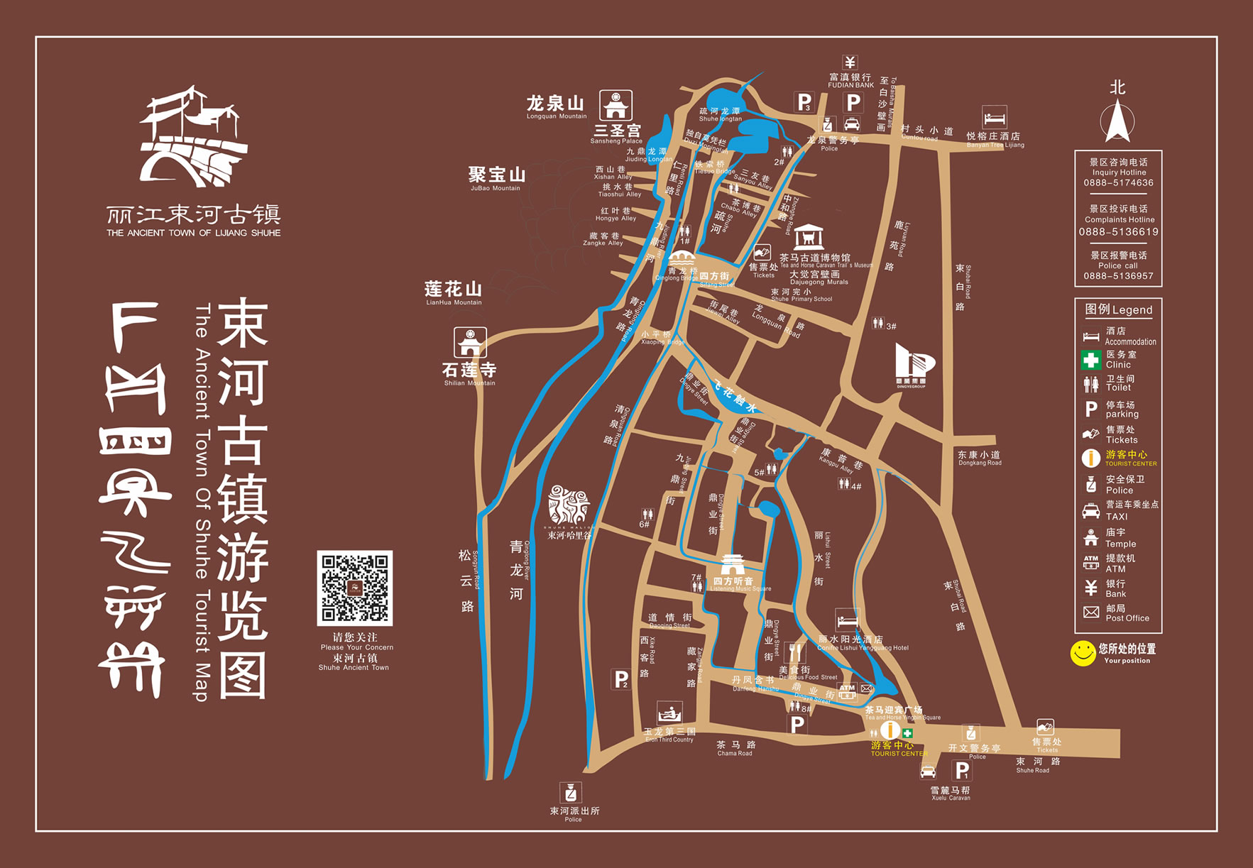 束河坐東朝西,背風(fēng)向陽,村后山林為玉龍山南下之余脈,山形秀麗,植被茂密,白沙巖腳院有鳳凰山,為麗江木氏發(fā)祥之地,至束河山形再變,呈祥瑞之象,堪輿家稱為“丹鳳含書之地”,預(yù)言文化昌盛,興旺發(fā)達(dá)。