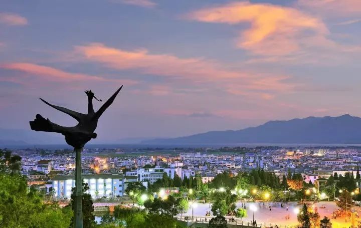 九苞鳳城,是指市區(qū)及城北的舞鳳山,土色粉紅,形同九頭丹鳳凌空翱翔。山溝梁王山的中支逼迫而來,如鳳首覽輝,左右兩山其勢如同鳳凰展翅。澂江古城,城墻高一丈九尺,方圓五華里零三分,門樓巍峨,南北的大街如書軸,東西的房屋相連,如打開的書卷,故有丹鳳銜書之稱。