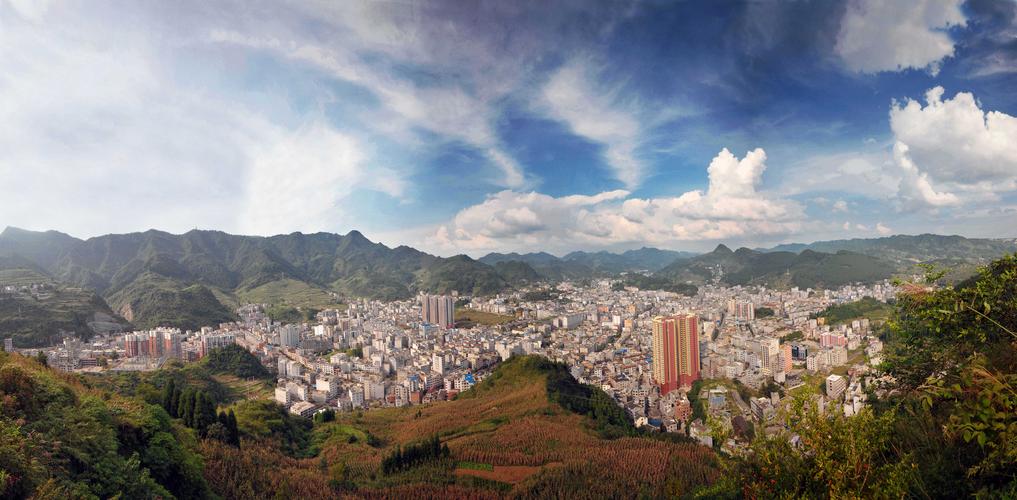 地形地貌 威信縣,地處四川盆地向云貴高原抬升過渡地帶。山脈系烏蒙山北延余脈,由西南部鎮(zhèn)雄縣入境,自西向東層層展布。以中部后山大嘴梁子一線為分水嶺,將全縣分為南、北兩部分,形成中部高、南部和北部低的魚脊形地貌。最高峰高田鄉(xiāng)楊龍塆梁子海拔1902米,最低點羅布河出境處海拔480米,平均海拔1131米?h城所在地扎西海拔1172.5米。山地占90%,河谷間小壩區(qū)占10%。