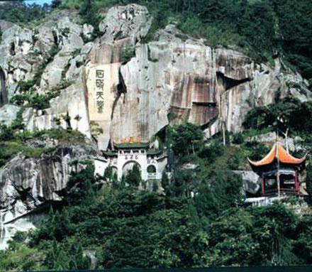 順石級而上,便可見一處寬敞的石廳。廳中有一巨石雕刻成的大碗。大碗直徑2.12米,可裝2噸多水,碗中有龍頭龜身的吉祥物。此碗已被列入世界吉尼斯記錄。從石廳左轉(zhuǎn),到達另一石廳。此廳存放著巨型石刻古錢幣。石青色,內(nèi)徑為0.8米,刻有“政和通寶”四字。從巖頂隙中滲出的清泉涓涓而下,剛巧穿過錢幣中央,因此古錢幣中央終年泉水滿盈。