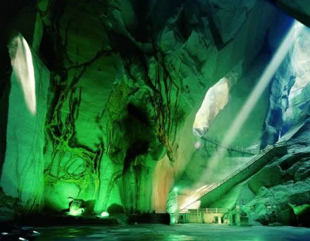 棄舟向左而行,豁然開朗,便是國內(nèi)絕無僅有的巖洞音樂廳了,巖洞音樂廳總面積為2000平方米,能同時容納近700人入座欣賞音樂廳民樂隊的精彩演奏。游人不管在音樂廳的哪個角落都能聽到同頻自然立體聲。2002年4月28日,長嶼硐天巖洞音樂廳舉辦了“中國首屆巖洞音樂廳”,同年10月21日德國北萊州交響音樂團在此成功舉行一場別開生面的“萊茵河之聲”巖洞音樂會。
