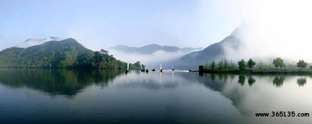 仙宮湖:崛立在云和縣緊水灘的浙南第一壩緊水灘水電站大壩,將滔滔甌江攔腰鎖住。在水電站建成的同時(shí),浙南的茫茫林海中奇跡般地出現(xiàn)了一個(gè)巨大的人工湖緊水灘庫(kù)湖。1993年8月9日經(jīng)地區(qū)行署批準(zhǔn),改名為仙宮湖。放眼全湖,碧波蕩漾,晶瑩似鏡,周圍千姿百態(tài)的奇巖異峰、浩如煙海松濤,點(diǎn)綴湖邊的村莊、田野和山林,好似一幅色彩斑斕,絢麗多姿的山水畫。這里廣闊的湖面,煙波浩渺,水山相連,望不盡頭。與千島湖相比,雖無(wú)“千島”之態(tài)。但湖中島嶼正在一個(gè)個(gè)形成。隨著蓄水位的漸漸增高,將會(huì)出現(xiàn)更多“湖心之島”。那晶瑩澄碧的湖水在陽(yáng)光的照射下,閃著瀲滟的波光,似一顆閃眼的明珠,鑲嵌在群山峻嶺之中。湖兩旁的松杉。翠竹掩映于湖唇,好似繡上一道花邊,君若泛舟湖中,其可謂“人行明鏡中”了。倘若天氣作變,更給景色增添妙異的變幻。晴天,頭上藍(lán)天萬(wàn)里,腳下碧波千頃,點(diǎn)點(diǎn)白帆移動(dòng),轟轟船只掠過(guò),舉目望去,山水一色;回首顧盼,卻置身于綠水青山之中。雨天,霧靄茫茫,層林碧水連成一片,人在湖面,有身置云霧瓊樓仙境之感。尤其在赤石、龍門一帶,水域?qū)掗,島嶼列布,湖區(qū)四周還有“九潭十八灣”、“夏洞天”、“龍老洞”、“蝴蝶洞”、“牛頭山”等勝景。仙宮湖不愧為特具魅力的旅游勝地。