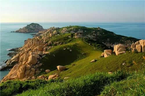 走過(guò)猴子拜觀音,可看見(jiàn)一塊大石,像一只熊貓?jiān)诤_厓A聽(tīng)著大海的潮聲。