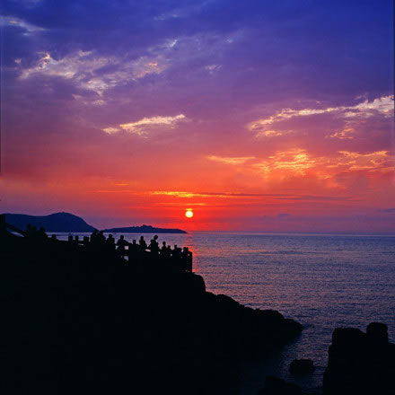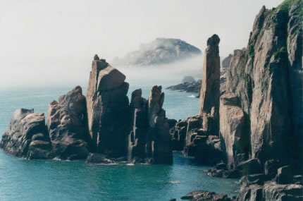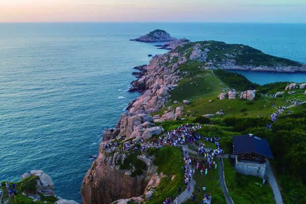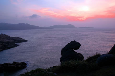 南麂島有兩座山,一座叫南麂山,高192米,另一座叫大山,高229米。這兩山蟠踞在一起,東南面形成了大沙岙,西北面形成了馬祖岙,站在山巔可望東海萬(wàn)頃云濤。尤其是看日出,一輪紅日,躍出在海平線上;紅日西沉,則滿(mǎn)天彩霞,逐步消失于蒼茫的暮色之中。