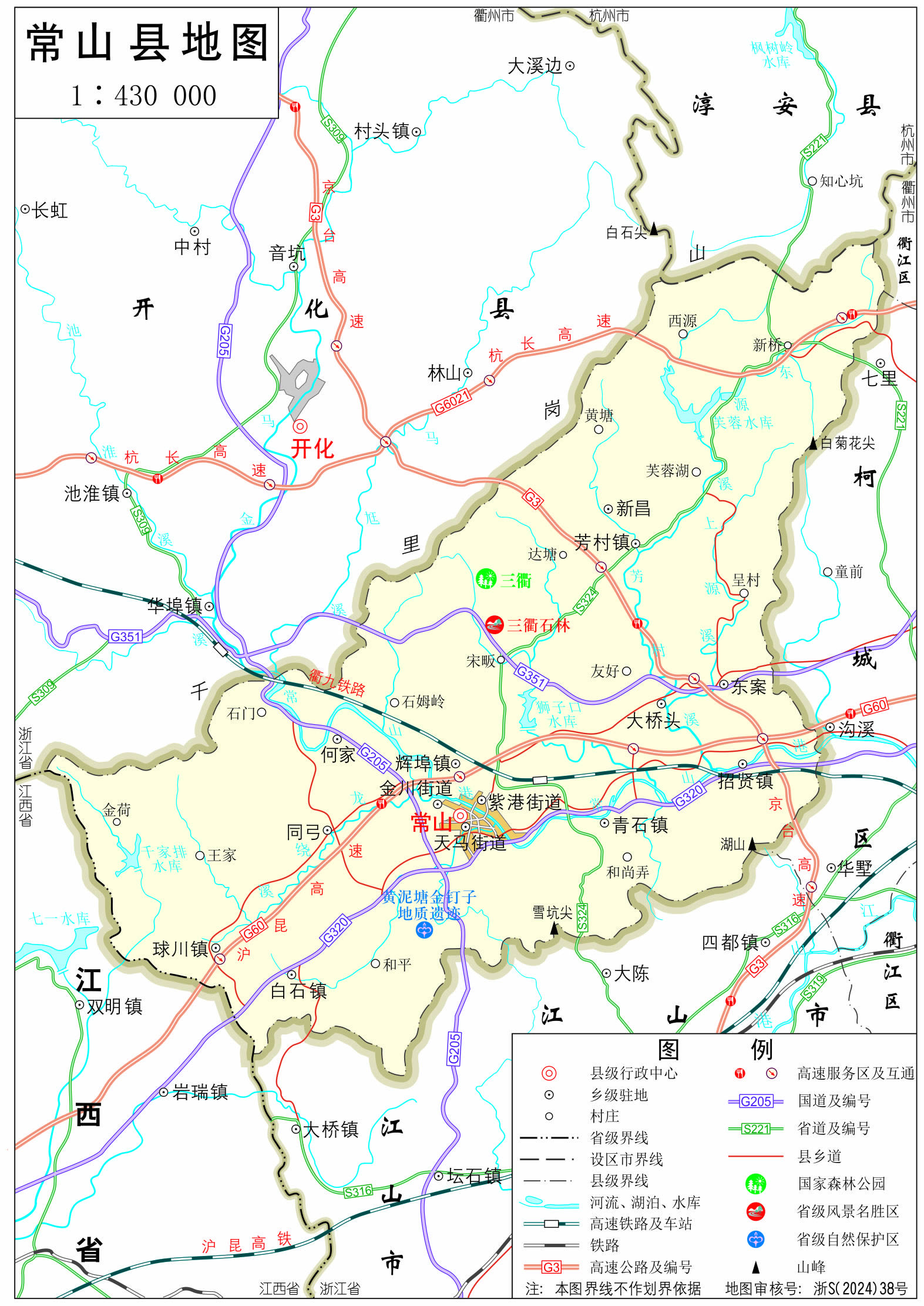 常山縣位于金衢盆地西部、錢塘江上游,北緯28°51′,東經(jīng)118°30′?偯娣e1099.07平方千米。常山縣地屬浙江省衢州市,毗鄰江西省,區(qū)位獨特,交通便利,素有“四省通衢,兩浙首站”之稱。周圍與柯城區(qū)、衢江區(qū)、江山市、開化縣;杭州市的淳安縣;江西省上饒市的玉山縣相接壤,總?cè)丝?2.48萬,轄7鎮(zhèn)14鄉(xiāng),341個行政村。城區(qū)天馬鎮(zhèn),建區(qū)面積8.9平方公里,人口9.11萬。東漢建安二十三年(公元218年)建縣,始稱定陽,建縣已近1800年的歷史。