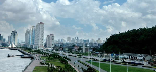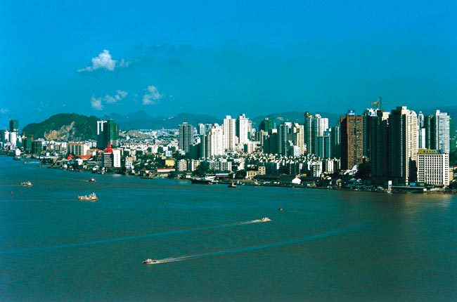 溫州市位于浙江省東南部,東瀕東海,南與福建省寧德市的福鼎、柘榮、壽寧三縣毗鄰,西和麗水市的縉云、青田、景寧畬族自治縣相接,北和東北與臺州市的仙居、黃巖、溫嶺、玉環(huán)四縣為界。地勢自西向東傾斜,西部屬浙南中山區(qū),迤東高度逐漸降低為丘陵地,東部是沿海平原。陸域面積12110平方千米,海域面積8649平方千米,海區(qū)負200米等深線以內(nèi)的面積6.67萬平方千米。
