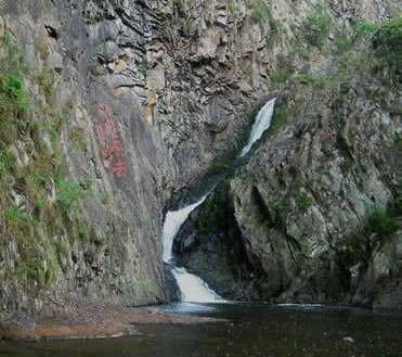 瀑布下面的深潭大約5米,黝黑無(wú)底,俗呼“大腳桶潭”。
