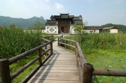 陸家莊在《神雕俠侶》中是陸展元、陸立鼎兩兄弟的莊院,小說第一回中寫道的故事情節(jié)就是在這府院發(fā)生的。陸家莊是影城中相對獨(dú)立的一個景點,主要由碼頭、風(fēng)雨亭、路棚、陸家莊院和農(nóng)戶院組成。這里三面有湖,展現(xiàn)的是古代農(nóng)村自然淳樸的風(fēng)格和農(nóng)家田園風(fēng)光。