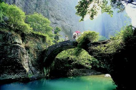 顯勝門景區(qū)范圍呈東北西南走向的狹長形。主要景點基本都分布在沸頭—南閤溪兩岸。徐霞客曾在游記中寫道:“溪北大山,自籍裊迤邐而來,皆層崖怪峰,變換闔辟,與云霧爭幻!笨芍^一語中的,道出了該區(qū)風景的特點。